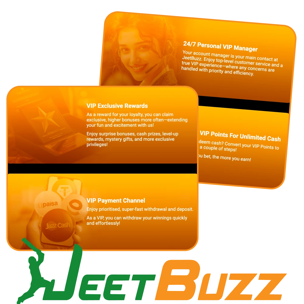 JeetBuzz VIP members in Pakistan get access to a range of exclusive rewards: